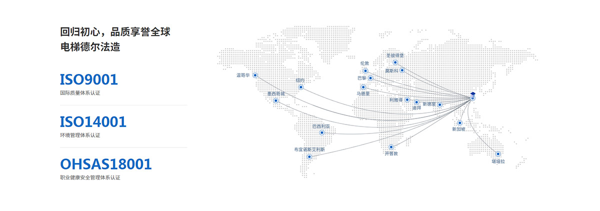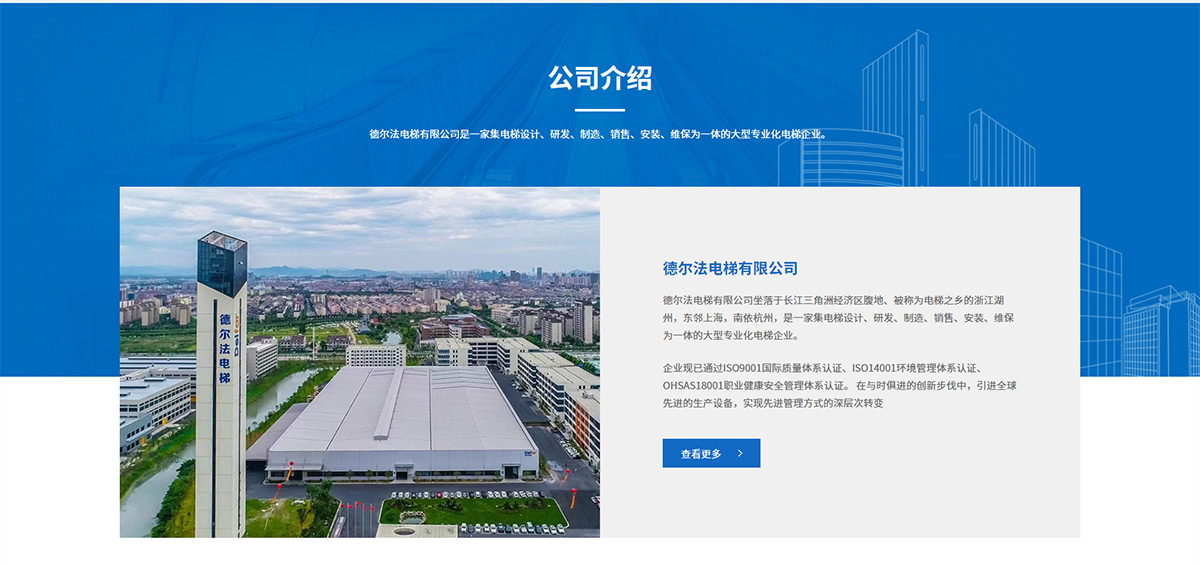 德?tīng)柗娞萦邢薰咀溆陂L(zhǎng)江三角洲經(jīng)濟(jì)區(qū)腹地、被稱(chēng)為電梯之鄉(xiāng)的浙江湖州,東鄰上海,南依杭州,是一家集電梯設(shè)計(jì)、研發(fā)、制造、銷(xiāo)售、安裝、維保為一體的大型專(zhuān)業(yè)化電梯企業(yè)。企業(yè)現(xiàn)已通過(guò)IS09001國(guó)際質(zhì)量體系認(rèn)證、ISO14001環(huán)境管理體系認(rèn)證、OHSAS18001職業(yè)健康安全管理體系認(rèn)證。在與時(shí)俱進(jìn)的創(chuàng)新步伐中,引進(jìn)全球先進(jìn)的生產(chǎn)設(shè)備,實(shí)現(xiàn)先講管理方式的深層次傳變,并不斷在智能化領(lǐng)域深耕,致力于打